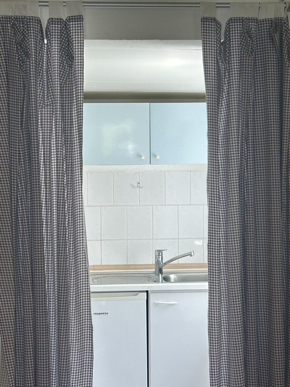 2 Herdplatten, Kühlschrank mit Gefrierfach, Kaffeemaschine, Toaster, Wasserkocher